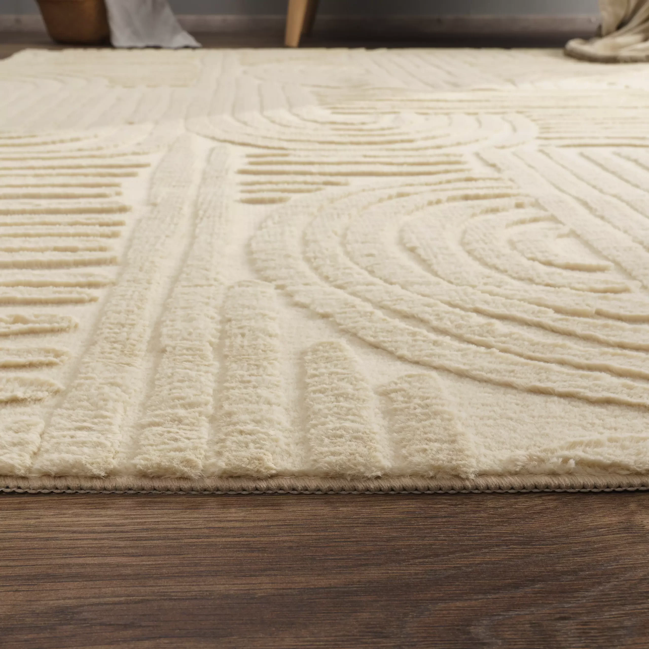 Liebhaber der Wohlfühloasen aufgepasst! Unsere unglaublich weichen Teppiche mit einem hypnotisierenden Muster aus Halbkreisen und parallel zueinander angeordneten Linien sind wahre Juwelen für dein Zuhause. In den Farben Beige, Creme, Anthrazit und Grau gehalten, verleihen sie deinem Raum eine wohnliche und elegante Atmosphäre. Das Muster aus Halbkreisen und Linien ist wie ein kunstvoller Tanz auf deinem Boden, der dem Raum eine besondere Tiefe verleiht.