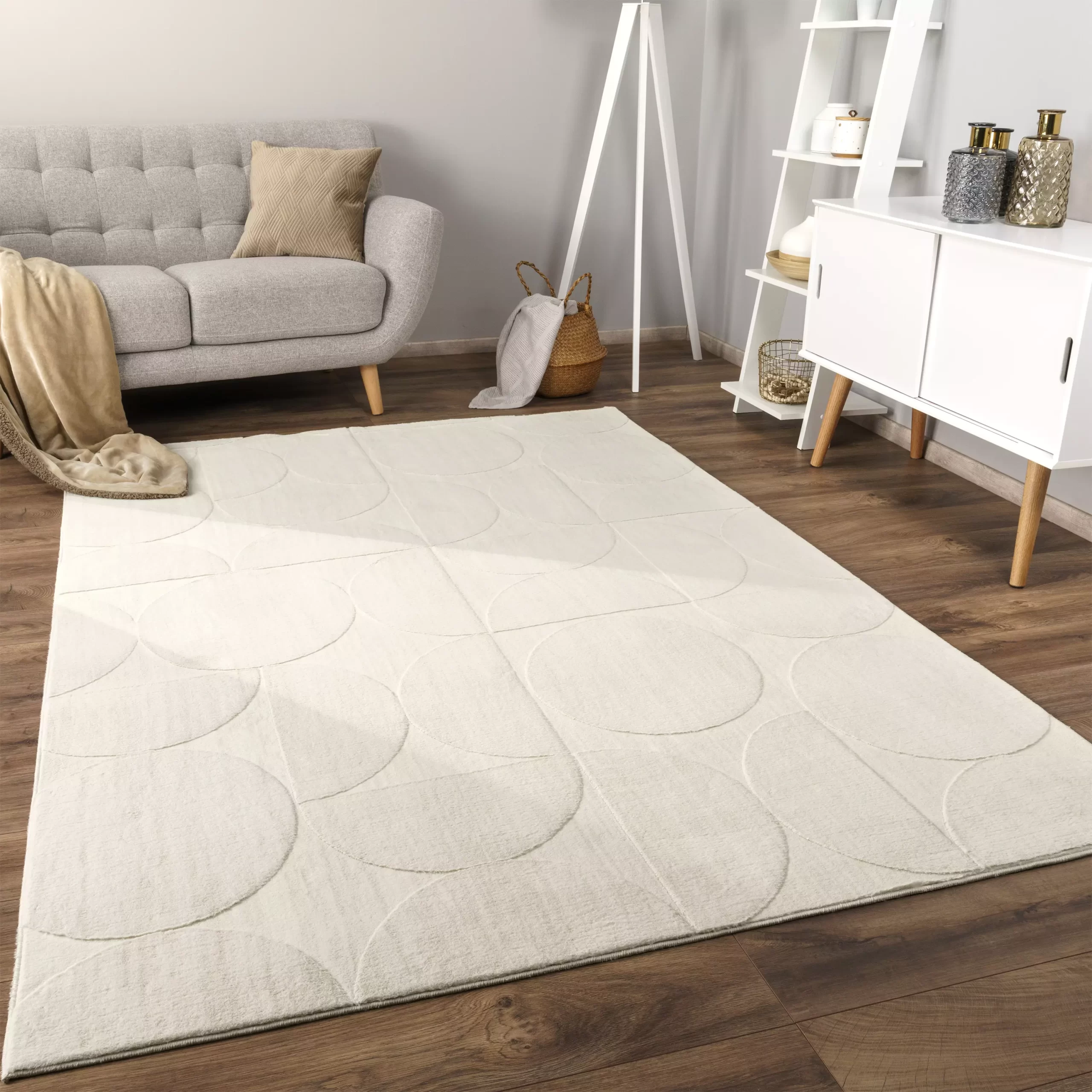 Als Teppich-Connaisseur suchst du noch nach dem absoluten Schmuckstück, das Design und Komfort bestens verbindet? Unsere Teppiche sind der Inbegriff von Gemütlichkeit und Kunst. Tauche ein in eine Welt der abstrakten Muster von Kreisen und Halbkreisen und schick deine Sinne auf eine wilde Achterbahnfahrt. In den Farben Beige, Creme, Anthrazit und Grau gehalten, verleihen diese Teppiche jedem Raum eine gewisse Raffinesse. Das Muster aus Kreisen und Halbkreisen verleiht deinem Bodenbelag eine Extraportion Schwung.