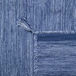 Dieser Teppich erinnert an das tiefe, blaue Meer und verleiht damit Ihrem Wohnambiente eine entspannte, behagliche Stimmung. Als zauberhafter Allrounder ist er zu 100 % aus Baumwolle gefertigt und das ausschließlich und liebevoll per Hand. Seine wunderbar changierende Oberfläche ergibt sich aus einem speziellen Webverfahren – die attraktiven Troddeln sind origineller Ausdruck des natürlichen Looks. Exklusiv im Design, überzeugt er auch mit seinen inneren Werten. Gefertigt aus Naturfasern, ist er dennoch sehr strapazierfähig und beeindruckt mit optimalen Pflegeeigenschaften. Auch seine intensive Farbbrillanz und die Eignung für Fußbodenheizungen hat er dem hochwertigen Material zu verdanken. Einrichtungs-Idee: Dieser natürliche Teppich ist wie geschaffen für den skandinavischen Look. Möbel in hellen Holztönen und Accessoires in Blau, Weiß und Grau komplettieren den angesagten Style.