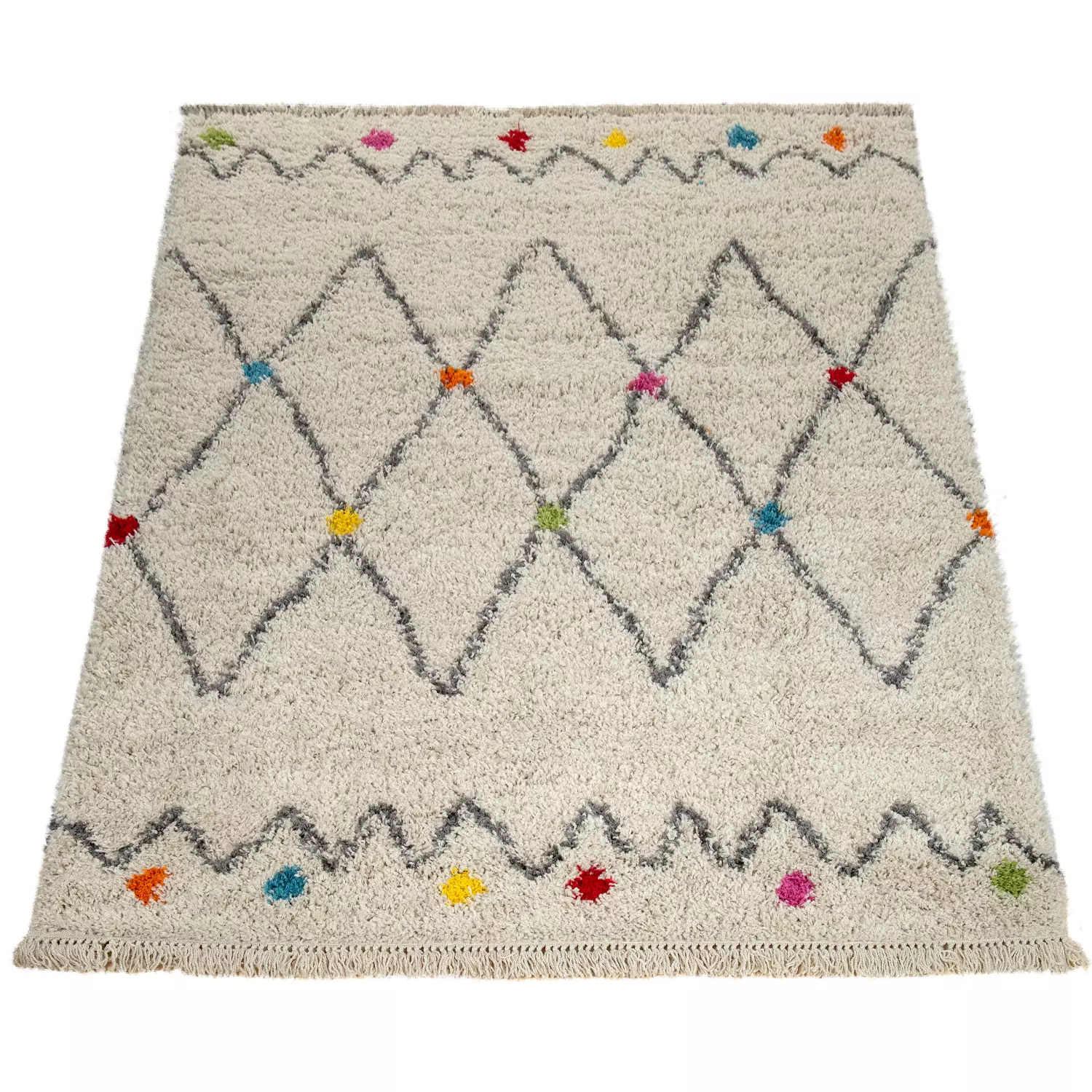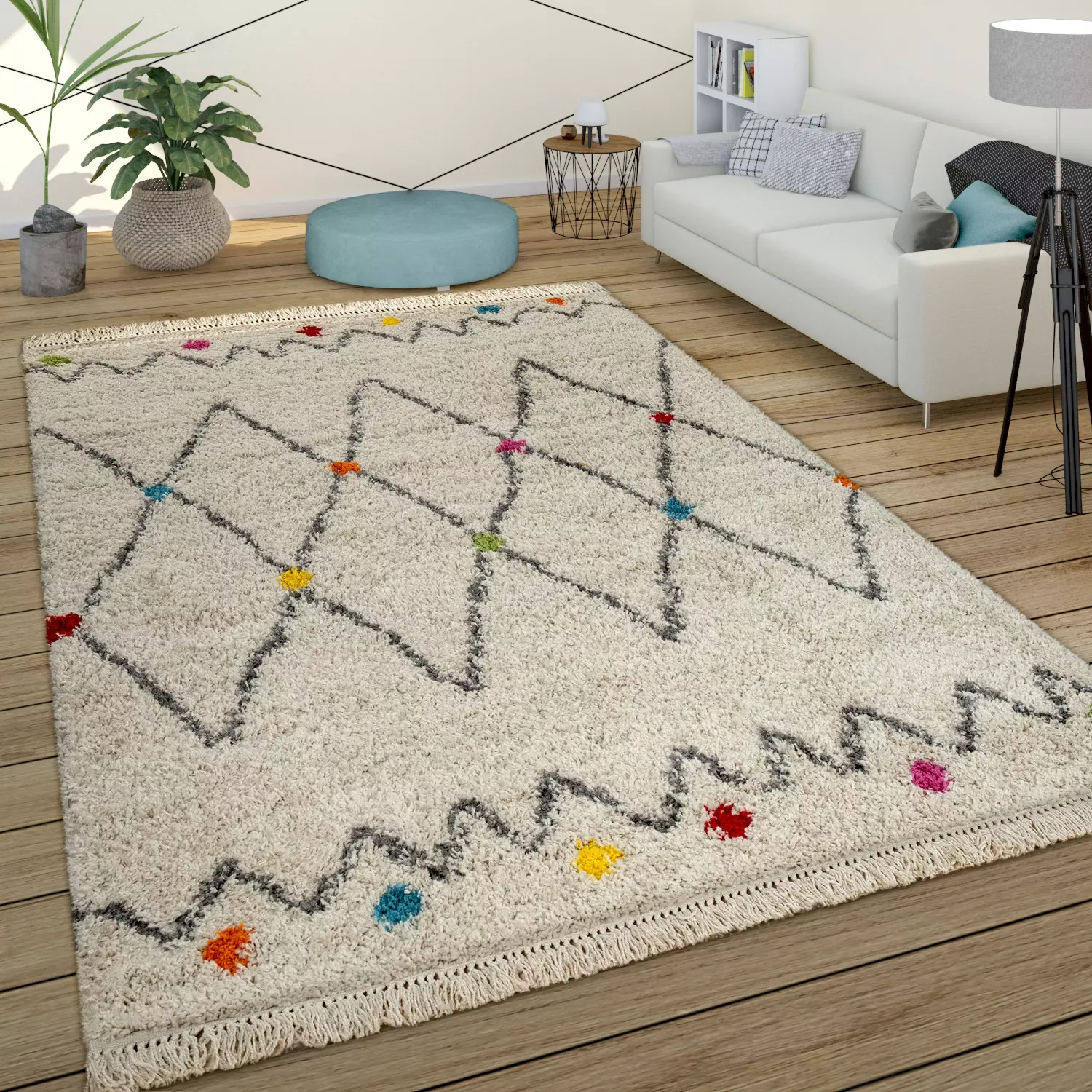 Gemütlichkeit, die ihresgleichen sucht! Mit den kuscheligen Shaggy-Teppichen dieser Kollektion zaubern Sie eine Oase der Ruhe und Gemütlichkeit in Ihre vier Wände. In stylishem Berber-Design und in schlichten Cremetönen gehalten, fügen die Teppiche sich in jeden Einrichtungsstil gekonnt ein ganz gleich, ob im Ess-, Schlaf- oder Wohnzimmer. Die rustikalen Fransen, das stilisierte, marokkanische Muster und die bewusst gesetzten Farbakzente verleihen den Vorlegern trotz ihrer unauffälligen Farbgebung das gewisse Etwas. Lassen Sie sich von den behaglichen und trendigen Teppichen verwöhnen! Die wohlig weichen Shaggy-Teppiche werden zu 100 % aus unempfindlichem Polypropylen hergestellt und sind somit trotz ihres langen Flors schön pflegeleicht und äußerst strapazierfähig. Mit einer unglaublichen Florhöhe von 35 Millimetern und einem Gewicht von 2.000 Gramm pro Quadratmeter sind die Teppiche unfassbar weich und bringen molligen Komfort. Nach STANDARD 100 by OEKO-TEX® geprüft, sind die Teppiche außerdem frei von jeglichen Schadstoffen.
