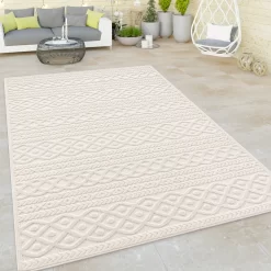 Wenn Sie Ihren Außenbereich schon immer ein wenig gemütlicher gestalten wollten oder auch einfach nur auf der Suche nach einem neuen, modischen Wohnaccessoire sind, verwandeln diese modernen In- und Outdoor-Teppiche jeden Bereich in eine schicke Wohlfühloase. In zurückhaltendem Creme erhältlich, lassen sich die Wohnwunder kinderleicht mit den angesagtesten Einrichtungsstilen kombinieren und werden schnell zu einem optischen Highlight, der Ihren Innen- oder Außenbereich gekonnt aufwertet. Der aufregende 3D-Effekt sorgt dafür, dass das geometrische Muster trotz der einfarbigen Ton in Ton-Gestaltung nicht untergeht und besonders zur Geltung kommt.