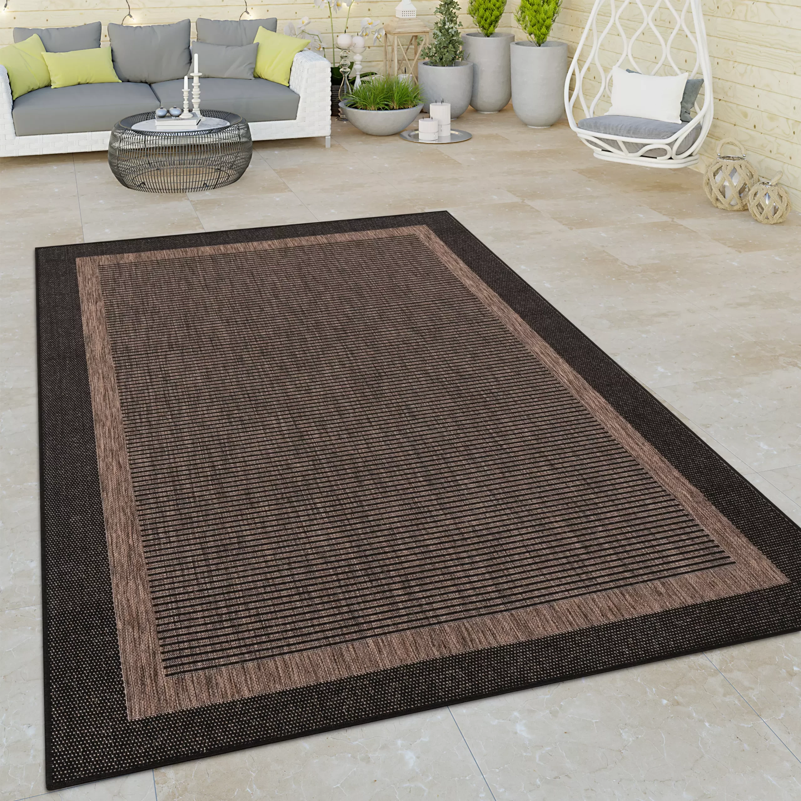 Mit diesen In- und Outdoor-Teppichen verwandeln Sie Ihren Balkon oder Ihre Terrasse in den warmen Monaten in eine exotische Oase! Egal, ob mit einer edlen Bordüre, einem exotischen Muster oder orientalischen Verzierungen – die Teppiche bezaubern mit ihrem morgenländischen Charme und werden so zum Hingucker. In sattem Schwarz, Gelb, Braun oder Anthrazit fügen sich die Flachgewebe-Teppiche nahtlos in das Ambiente in Ihrem Wohn- oder Außenbereich ein! Hergestellt zu 100 % aus robustem Polypropylen sind die In- und Outdoor-Teppiche strapazierfähig, UV-beständig und leicht zu reinigen. Das Material besticht mit hoher Qualität und durch die intensiv brillanten Farben. Nach STANDARD 100 by OEKO-TEX® getestet, sind die Teppiche vollkommen schadstofffrei und bringen höchsten Wohnkomfort!