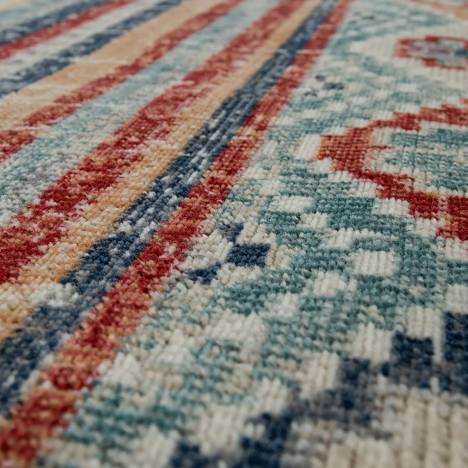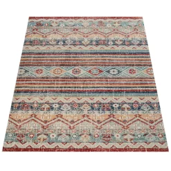Orientalischer Vintage-Look auf Ihren Böden! Farbenfroh und mit verspielten Ornamenten versehen, zaubern diese Indoor-Teppiche ein Gefühl von Orient in Ihre vier Wände. Die warmen, bunten Farben und der morgenländische Charme werden von markantem Used-Look ergänzt. Genau diese moderne Mischung aus traditionellen Mustern und modernem Look verleiht den Teppichen einen einzigartigen Charakter, der sich in jedes Ambiente einfügt, und macht sie flexibel kombinierbar. Lassen Sie sich von den Vintage-Teppichen begeistern – egal, ob im Wohn- oder Essbereich! Die robusten Flachgewebe-Teppiche werden zu 100 % aus Polypropylen hergestellt. Dieses pflegeleichte Material besticht durch brillante, kräftige Farbtöne, ist leicht zu reinigen und überaus strapazierfähig. Durch die hochwertige maschinelle Fertigung sind die Vorleger präzise und fein gewebt und der Teppichrücken aus Latex verhindert selbst auf glatten Böden, dass die Teppiche verrutschen oder leicht Falten werfen. Das STANDARD 100 by OEKO-TEX® Prüfsiegel besagt, dass die Teppiche schadstofffrei sind!