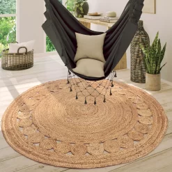 Beweisen Sie mit diesen wundervoll stylishen Jute-Teppichen Ihr einmaliges Gespür für Trends und verschönern Sie dabei ganz leicht Ihr Lieblingszimmer. Es muss nicht immer bunt und voller Muster sein, um einen Effekt zu erzielen, diese handgefertigten Teppiche sind mit ihrer zurückhaltenden Farbgebung echte Naturschönheiten. Die schmucken Cut-Outs im Design der runden Wohnwunder komplettieren den modischen Gesamteindruck und sorgen dafür, dass die geschmackvollen Teppiche nicht neben anderen Möbeln und Einrichtungsgegenständen untergehen.