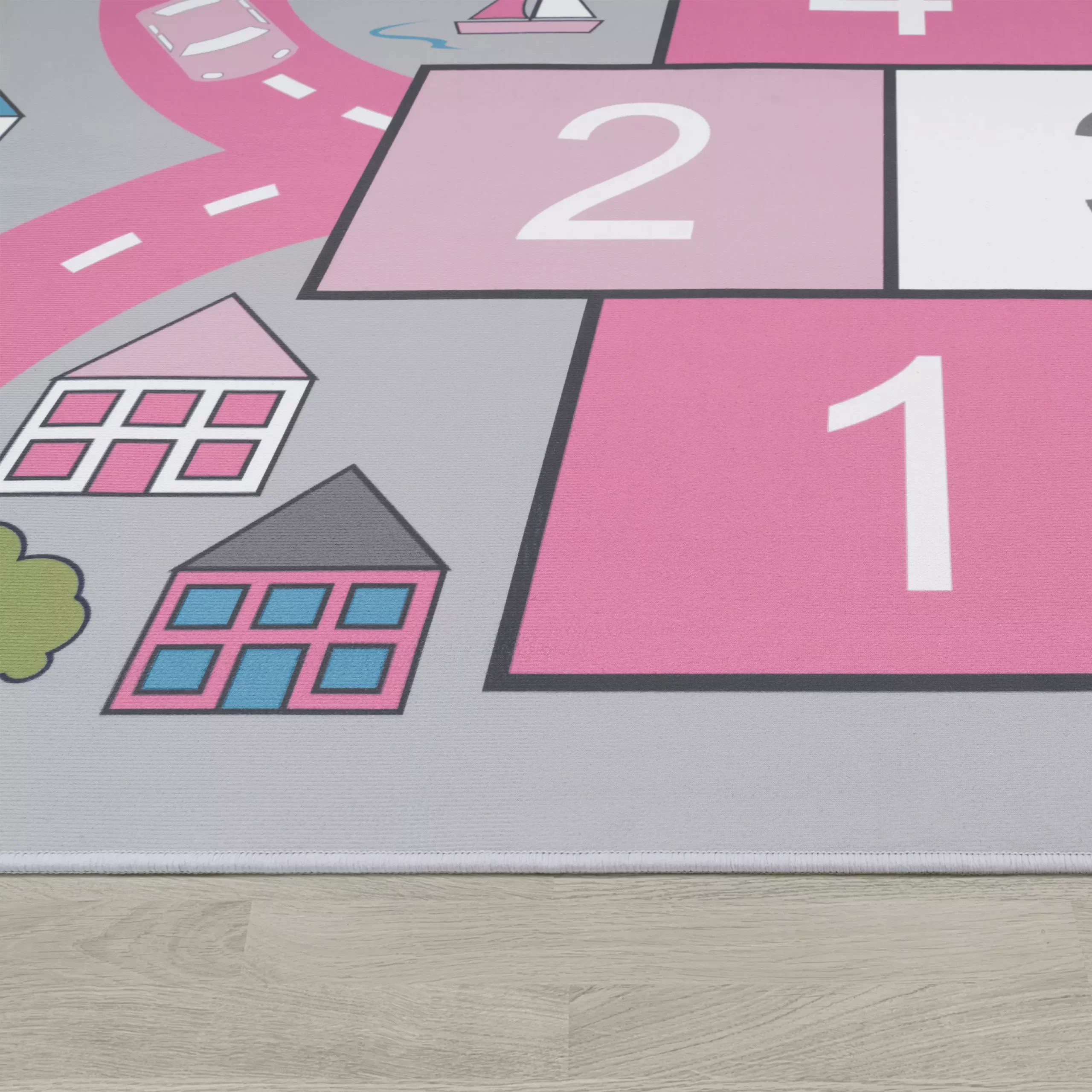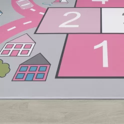 Eine traumhafte Spiel-Kombination: Vielseitig und verspielt wird Ihren Kindern mit diesen Kinder-Teppichen garantiert nie langweilig! Mit einer zauberhaften Verbindung aus dem klassischen Hüpfkästchen-Spiel und dem allseits beliebten Straßen-Design werden die Teppiche dieser Kollektion im Handumdrehen zum Zentrum von Spiel sowie Spaß und lassen dank der rosa Farbgebung besonders Mädchen-Herzen höher schlagen. Dank der spielerischen Details können Ihre Kleinen auf ihrer fantasievollen Reise über die Straßen ständig etwas Neues entdecken und es wird nie langweilig im Kinderzimmer!