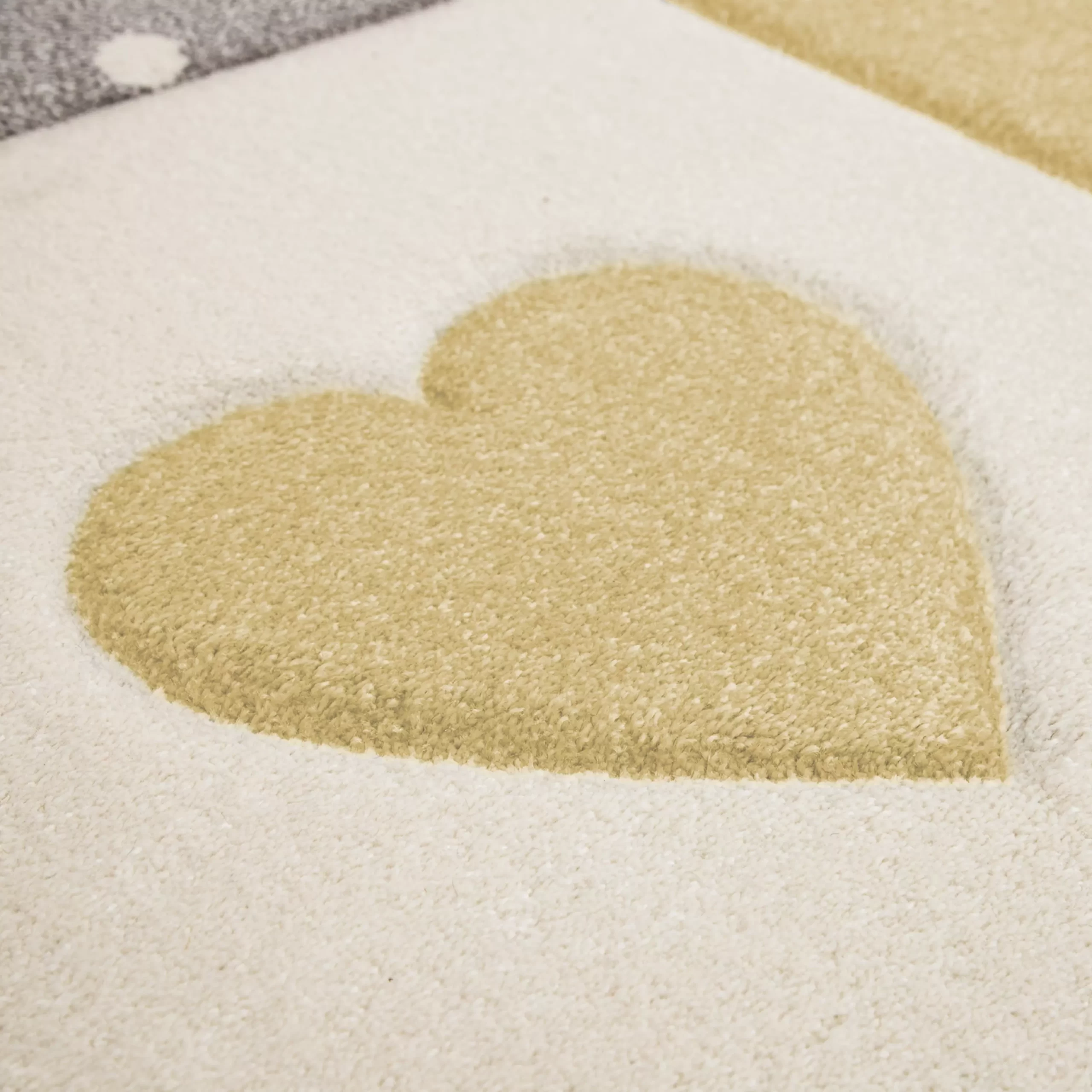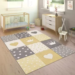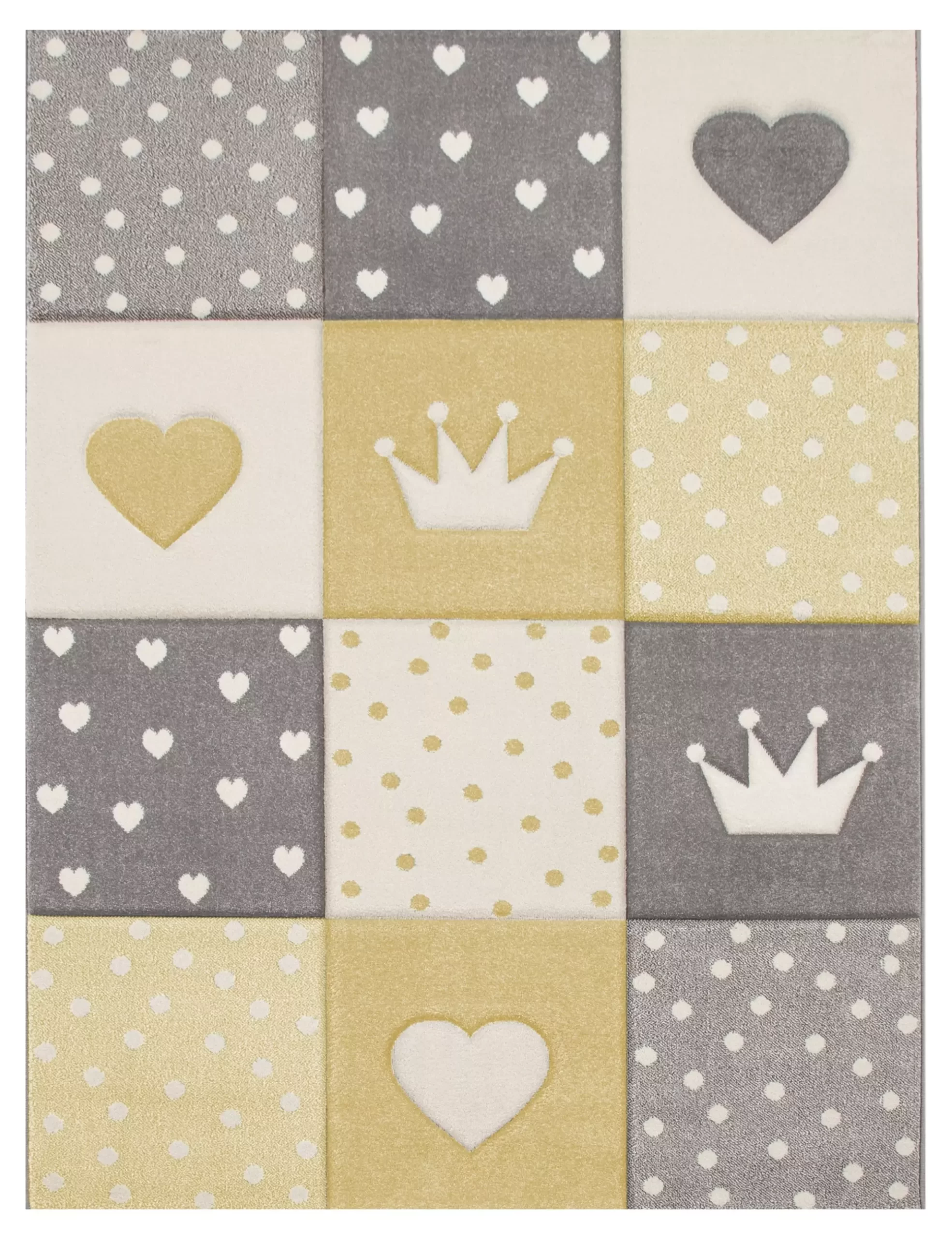 Setzen Sie Ihrem Kinderzimmer die Krone auf und zaubern Sie im Handumdrehen eine gemütliche und beruhigende Atmosphäre, die Ihren Kleinen beim Spielen ebenso gefallen wird, wie beim Entspannen. Diese trendigen Kurzflor-Teppiche überzeugen mit einem angesagten Quadratmuster und verspielten Details in Kronen- und Herzform. Mit ihren modernen Farbtönen in erdigem Beige oder sanftem Gelb lassen sie sich außerdem kinderleicht in jeden Einrichtungsstil einfügen. So passen diese Allround-Wohnaccessoires einfach in jedes Kinderzimmer und sorgen für Spaß und Gemütlichkeit.