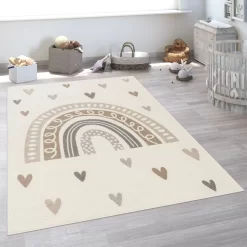 Die Herzchen auf diesen wunderschönen Teppichen spiegeln genau das wider, was wir denken, wenn man das zuckersüße Regenbogen-Motiv in der Mitte der Kurzflore anschaut. Aber nicht auf unseren Geschmack kommt es hier an, sondern auf Ihren oder vielleicht sogar noch etwas mehr auf den Ihrer Kinder. Wir glauben jedoch, dass kein kleines Mädchen den liebevoll gestalteten Designs und den zarten Farben wie Pink, Grau, Beige oder Creme widerstehen kann und sind uns sicher, dass die Teppiche die perfekte Spielunterlage in jedem Kinderzimmer sind.