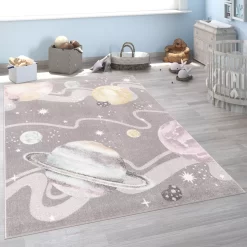 Der Weltraum – unendliche Weiten – und jetzt auch unendlich viel Spielspaß! Mit diesen trendigen und kindgerechten Kurzflor-Teppichen holen Sie sich ein echtes Abenteuer ins Kinderzimmer. Die modern gestalteten Wohnaccessoires mit dem spannenden Weltraum-Design kommen in angesagten und unaufdringlichen Farbvariationen daher, die sich kinderleicht mit bestehender Einrichtung kombinieren lassen und schnell zum neuen Highlight werden. In Grau und Anthrazit erhältlich, passen die Teppiche problemlos in jedes Zimmer und mit ihrem traumhaft weichen Flor schützen sie dabei auch noch Knie und Hände.