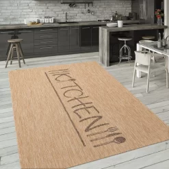 Bei diesen plakativen Teppichen muss man kein Sherlock Holmes sein, um zu begreifen, wo die schicken Vorleger hingehören – nämlich ganz klar in die Küche. Der eindeutige, schlichte Schriftzug macht auf den ersten Blick klar, dass es sich um Küchenteppiche handelt und sieht dabei auch noch unvergleichlich gut aus. Wenn Sie also auf der Suche nach einem unaufdringlichen Statement-Designobjekt für den wahrscheinlich leckersten Raum Ihres Hauses sind, liegen Sie mit den praktischen Flachgeweben garantiert richtig. Bei den Farben haben Sie die Wahl zwischen schlichten Klassikern wie Beige, Anthrazit oder Grau, die sich perfekt in jede Einrichtung einfügen.