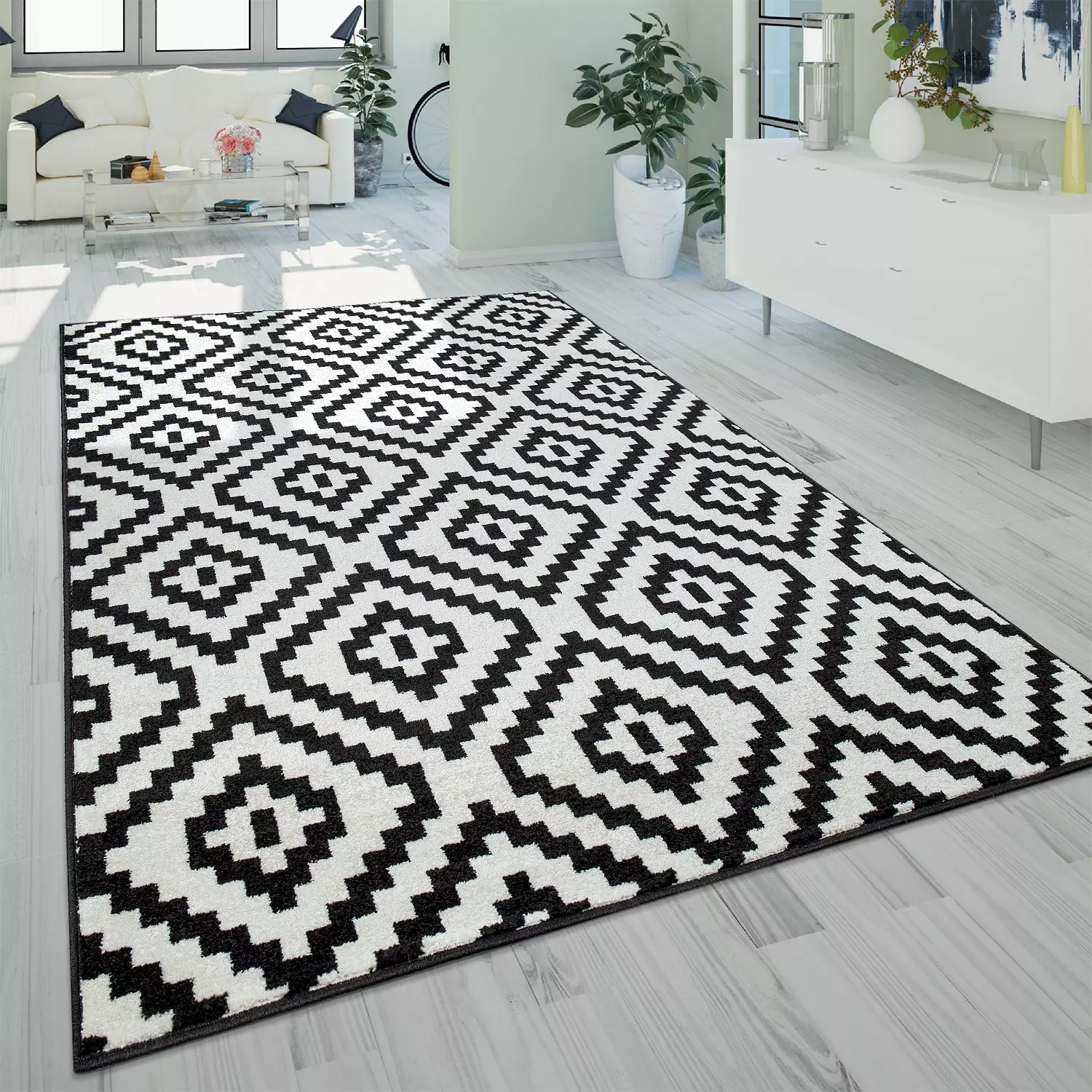 Moderner-Teppich Bella Schwarz-Weiß 160×220 Cm