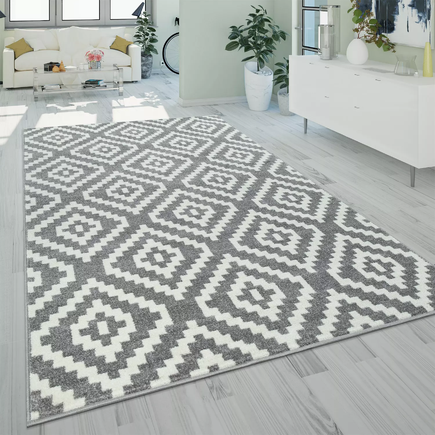 Traumhafter Komfort in sanften Farben: Beruhigend und doch extravagant zaubern diese trendigen Teppiche einen regelrechten Regenbogen aus Ethno-Stil in Ihre Inneneinrichtung und strahlen förmlich vor guter Laune und wohnlichem Esprit. Das weiße Zickzack-Rautenmuster ist dabei der perfekte Kontrast zu der verträumten Farbgebung und verhindert, dass die abgetönten Wohnaccessoires zwischen Möbeln und Dekor untergehen. In verschiedenen Farben gehalten, sind die Teppiche dieser Kollektion in Grau und Beige aber auch in Blau und Gelb erhältlich und finden so garantiert selbst bei dem größten Teppichmuffel Gefallen.