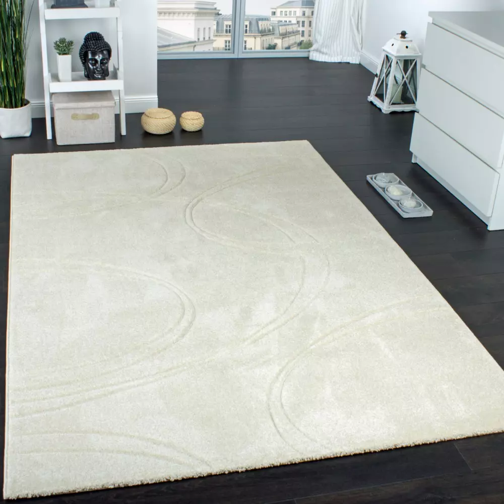 Dieser Teppich ist eine Einrichtungs-Idee der künstlerischen Art. In seiner Wirkung höchst luxuriös, besticht er vor allem durch seine sanfte Farbgebung in Elfenbein. Die feinen Linien des Musters wurden per Hand in den Flor geschnitten und geben dem Teppich eine dreidimensionale Optik. Holen Sie sich jetzt ein behagliches Flair nach Hause und ergänzen Sie Ihre Wohnlandschaft um eine Kuscheloase, die gleichzeitig für den modernen Touch sorgt. Das verwendete Material Polypropylen ist pflegeleicht und lässt sich einfach reinigen. Dank der robusten Oberfläche werden Sie lange Freude an diesem Teppich haben – zudem ist er schadstoffgeprüft und für die Fußbodenheizung geeignet. Einrichtungs-Idee: Dieses Wohnaccessoire eignet sich durch seinen weichen Flor besonders gut für den Wohn- oder Schlafbereich und versprüht hier ein hohes Maß an Behaglichkeit. Auf dunklem Boden kommt er besonders gut zur Geltung, während Vorhänge in Weiß oder eine farbige Wand in hellem Braun das Farbkonzept vervollständigen.