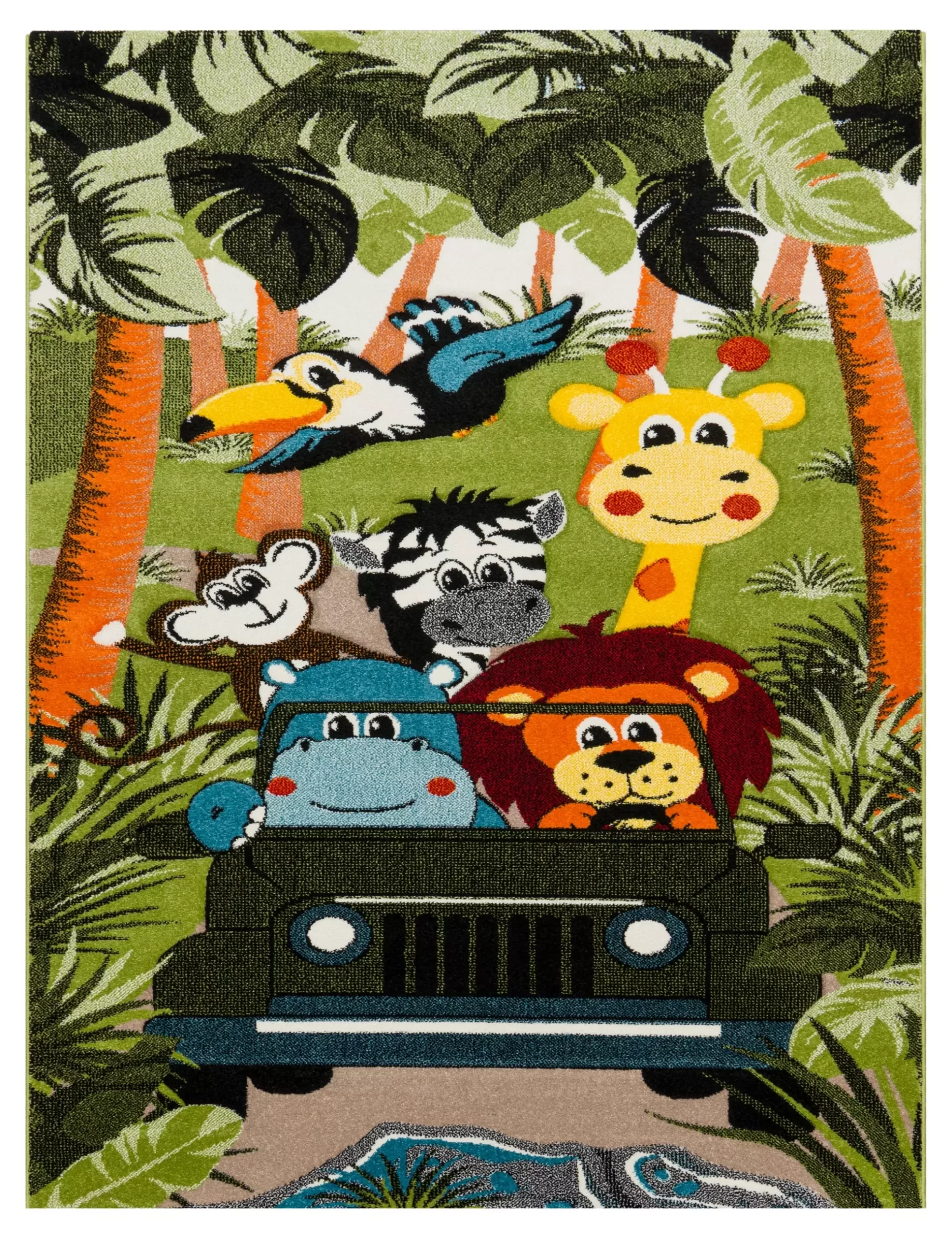 Wir packen unsere besten Freunde ein und gehen auf Safari! Dies könnte das Motto für diese zuckersüßen Kinderteppiche sein, denn mit diesen geschmackvollen Vorlegern erleben Ihre Kinder zusammen mit den fröhlichen Tieren ein echtes Abenteuer. Das niedliche Äffchen findet zusammen mit dem Nilpferd, der Giraffe, dem Zebra und dem Löwen in einem coolen Jeep Platz, während der Tukan von oben über die spannende Expedition wacht und ein Auge auf Ihr Kind beim wilden Toben im Kinderzimmer hat. Die bunten Farben der Teppiche bringen jedenfalls garantiert gute Laune ins Reich Ihrer Kleinen!