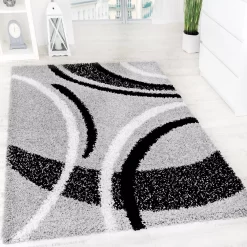 Die Farbe Grau liegt dieses Jahr absolut im Trend! Der Shaggy im Farbenmix Schwarz, Grau und Weiß ist elegant in der Anmutung und daher wie geschaffen für Büroräume oder die moderne Einrichtung. Sein Muster in unterschiedlichen Bogenformen setzt hier genau den kreativen Akzent, den Sie sich bei einem Teppich wünschen. Gleichzeitig ist der hohe Flor gemütlich weich und überzeugt durch einen behaglichen Charakter. Ein Schmuckstück, welches sich ebenso auf Holzböden wie auf Fliesen wie Zuhause fühlt. Sehr strapazierfähig, unempfindlich und leicht zu reinigen – dieser Teppich wird durch seine praktischen Eigenschaften zum Allrounder in allen Räumlichkeiten. Natürlich ist er mit Bestnote auch auf Schadstoffe geprüft und für die Fußbodenheizung geeignet. Einrichtungs-Idee: Durch die dezente, wenn auch kontrastreiche Farbgebung passt sich der Teppich sich nahtlos an jede Einrichtung an. Entscheiden Sie sich doch einfach als Kontrastpunkt für eine ausdrucksstarke Farbe wie Grün oder Blau!