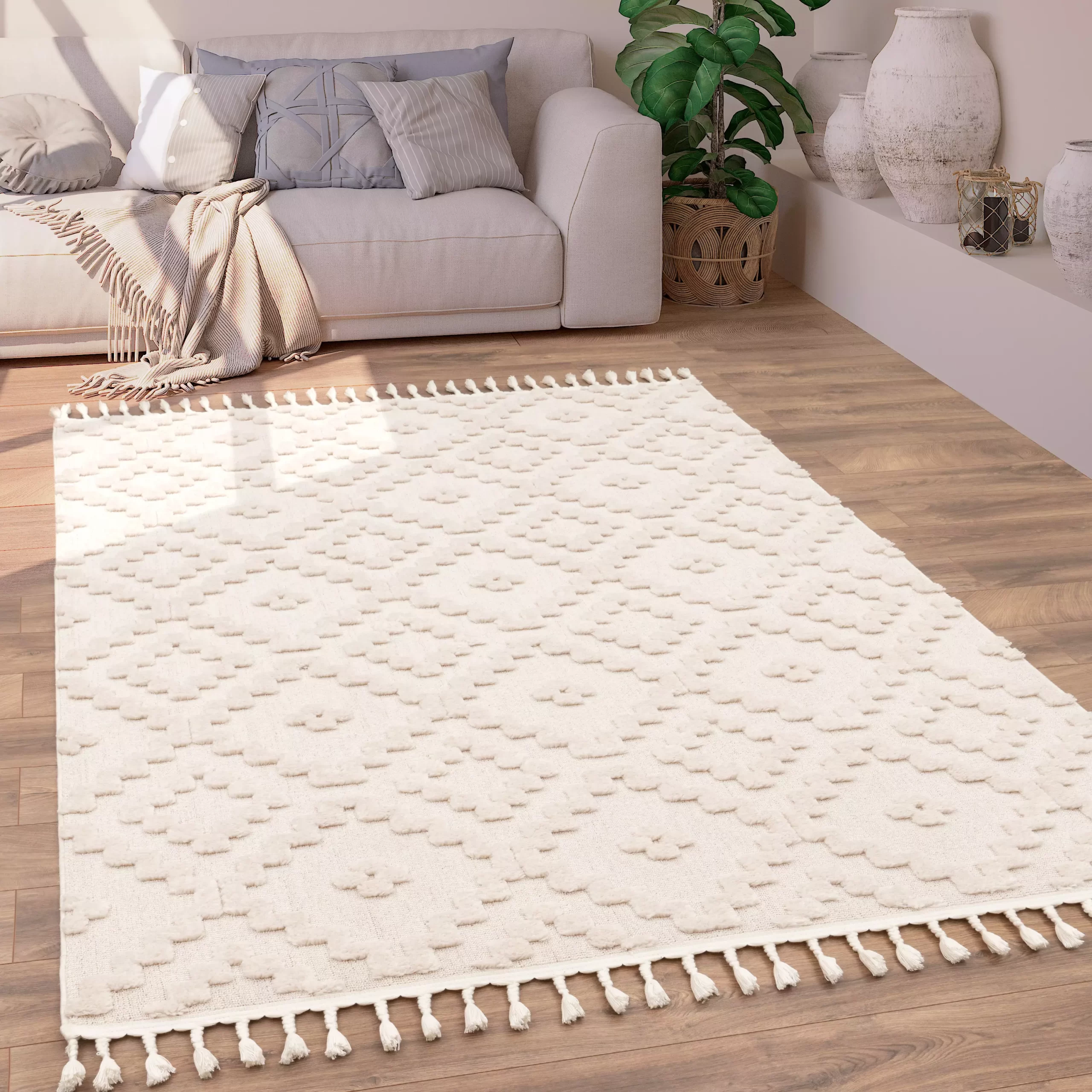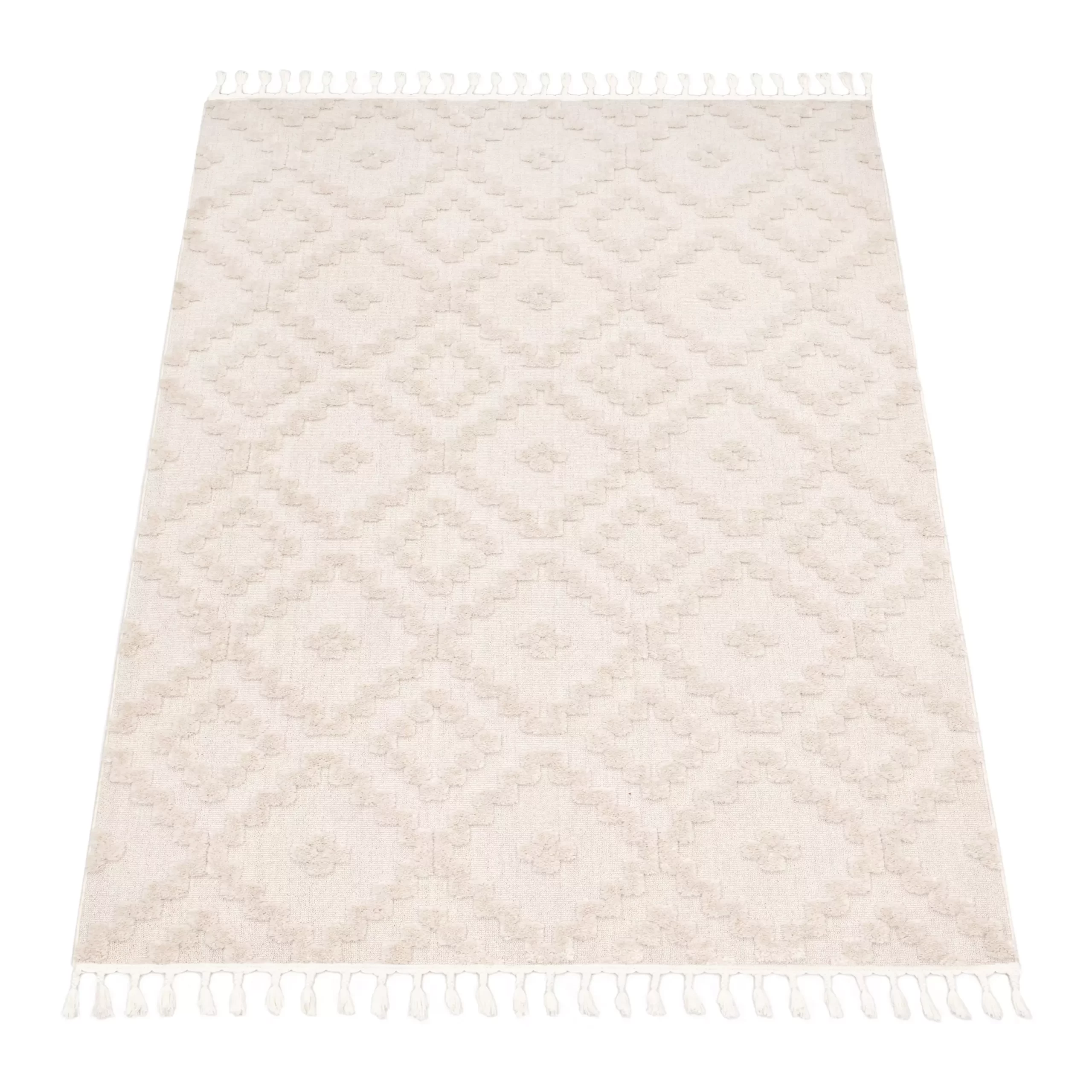 Einfarbig muss nicht gleich langweilig bedeuten! Diese wundervollen Teppiche in Creme beeindrucken mit ihrer stilvollen Optik und haben es nicht nötig, mit auffälligen Mustern oder grellen Farben auf sich aufmerksam zu machen. Hier spricht die außergewöhnliche Qualität der Teppiche und das edle Rauten-Muster für sich. Kleine Details wie die verspielten Fransen sorgen zusätzlich dafür, dass sich die Teppiche im Raum nicht verlieren, sondern für jedes Ess- oder Wohnzimmer eine moderne Bereicherung darstellen.