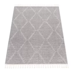 Jeder von uns kennt es und die meisten lieben es: Das allseits gern genutzte Rautenmuster, ein absoluter Klassiker unter den Teppichdesigns. Auch diese schicken Kurzflore ziert ein Karo-Muster, allerdings war es selten so stilvoll und dekorativ wie hier. Mit diesen Wohnaccessoires zaubern Sie sich im Handumdrehen ein einmalig gemütliches Ambiente nach Hause, denn dank der hellen Farbgestaltung wahlweise in Grau oder Creme, machen die Vorleger überall eine gute Figur und begeistern neben den verspielten Fransen auch mit ihrem raffinierten Hoch-Tief-Effekt.