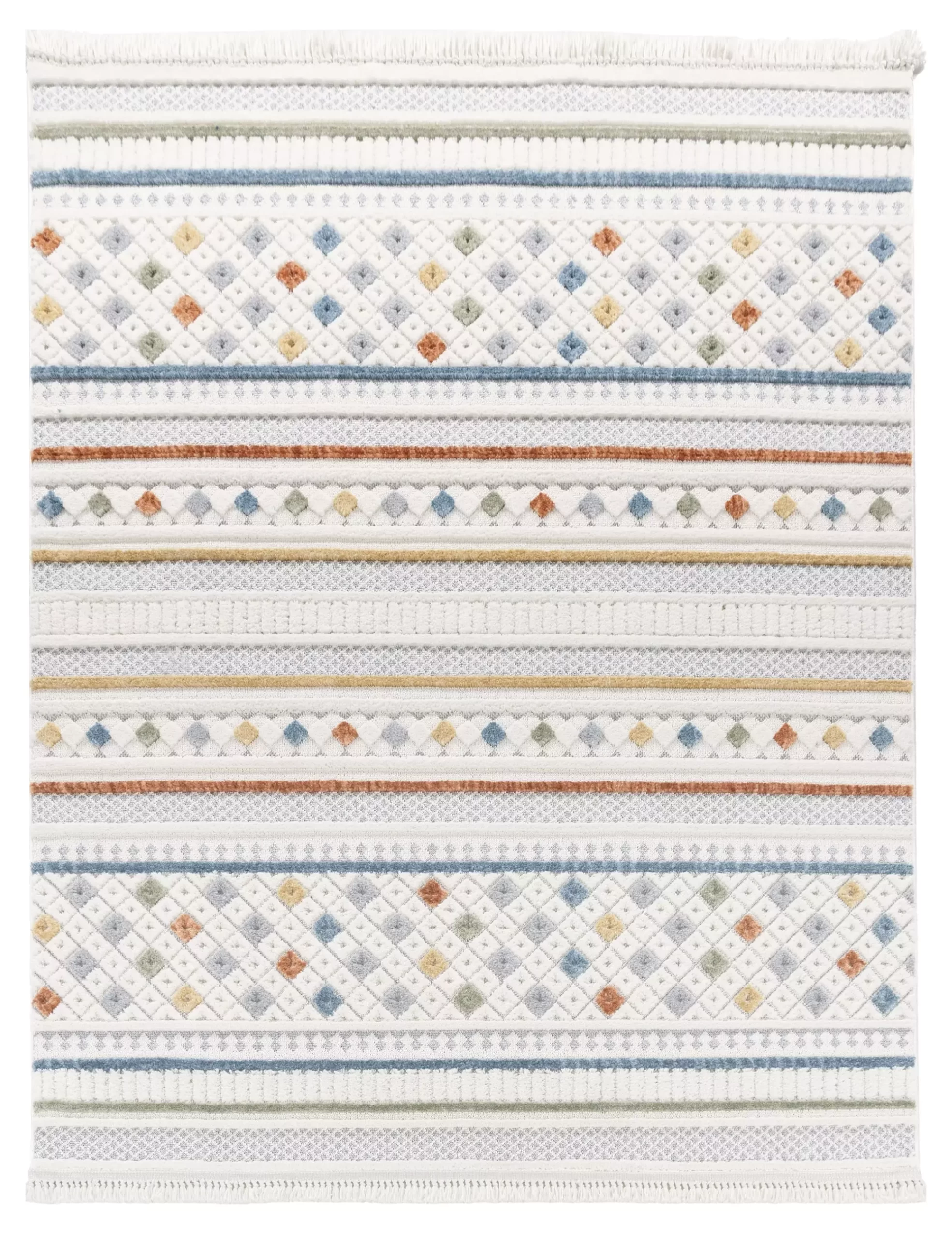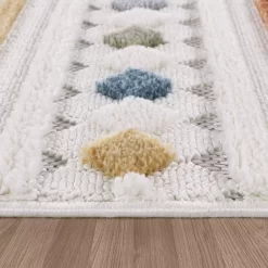 Du suchst Teppiche, die Farbe und eine spannende Optik gekonnt miteinander vereinen? Schau dir diese bemerkenswerten Teppiche an, die das klassische Ethno-Design mit einer modernen Farbpalette auf ein neues Niveau heben. Auf einem hellen Hintergrund präsentieren sie Linien und Muster im charakteristischen Ethno-Stil, mit eindrucksvollen Farbakzenten in Blau, Rot, Grün, Grau und weiteren Farbvariationen. Ob dein Einrichtungsstil traditionell oder zeitgenössisch ist, diese Teppiche werden deinem Zuhause einen Hauch von Exotik und Individualität verleihen. Jedes Muster erzählt eine Geschichte und jede Farbkomposition verleiht deinen Räumen eine einzigartige Atmosphäre.