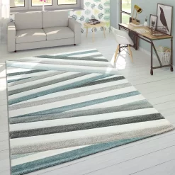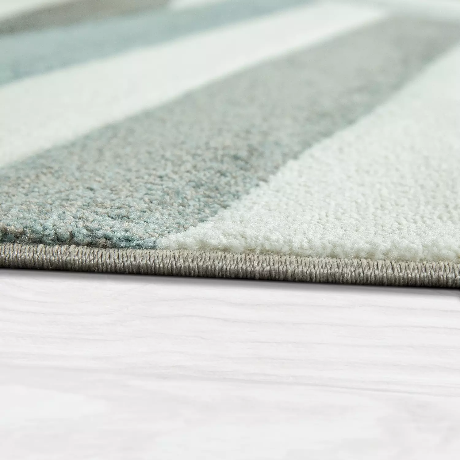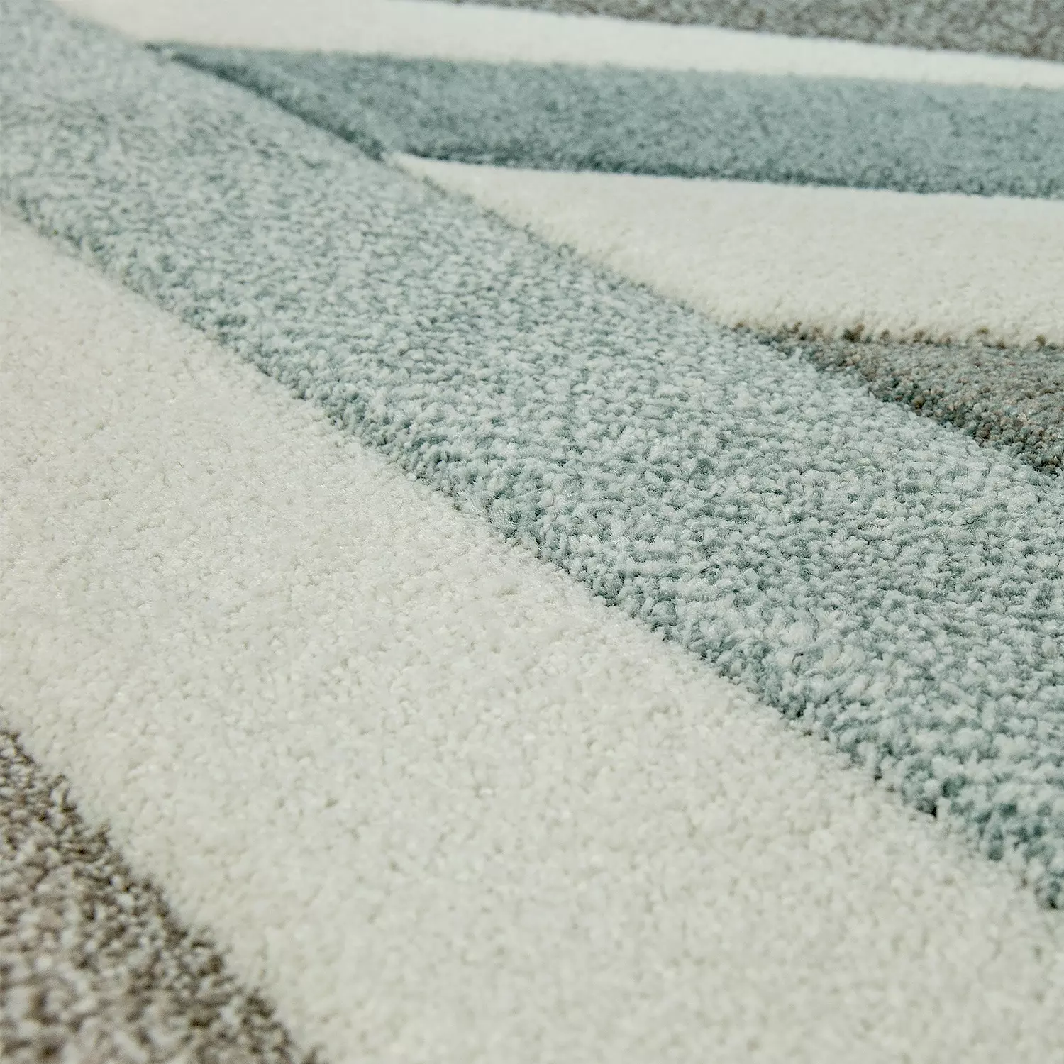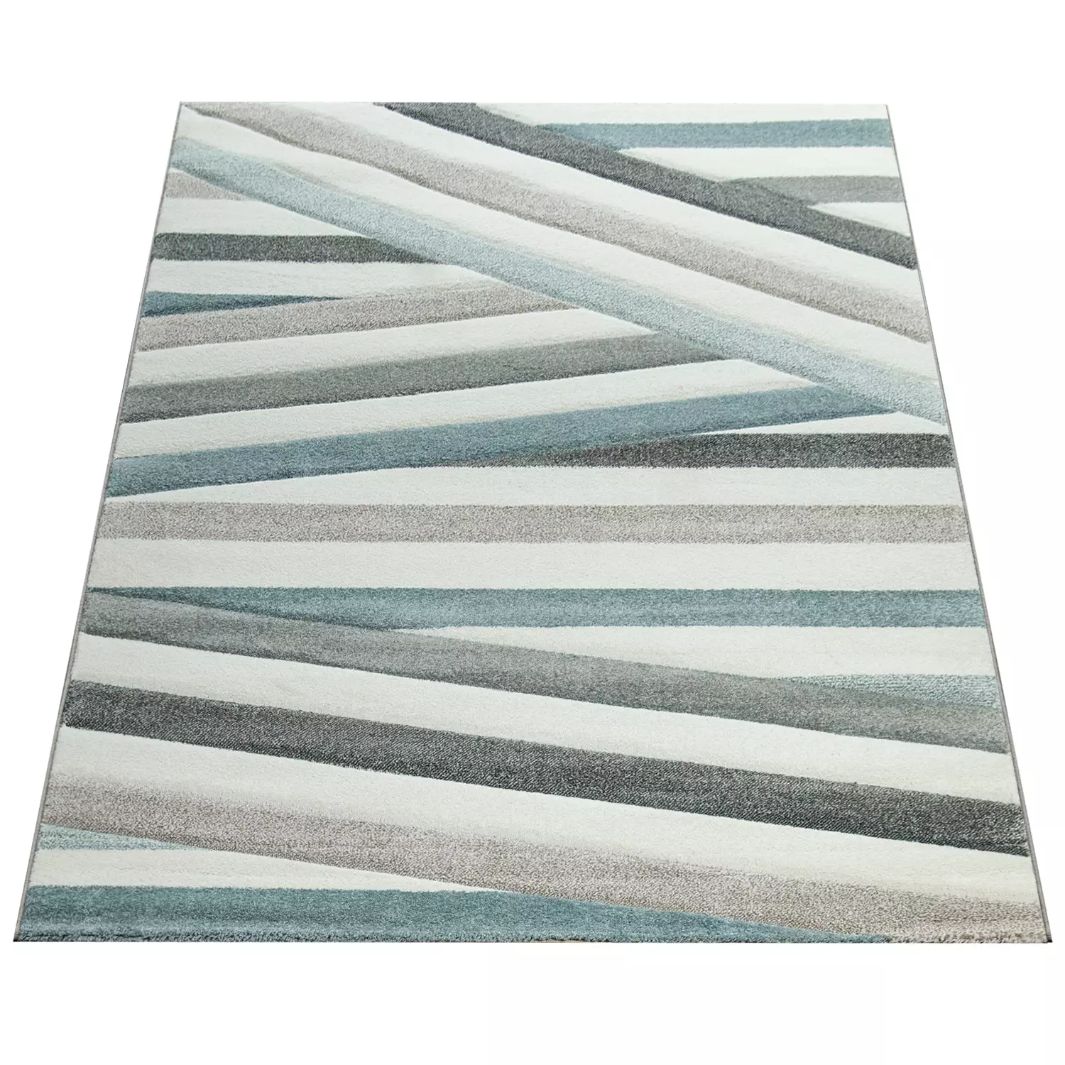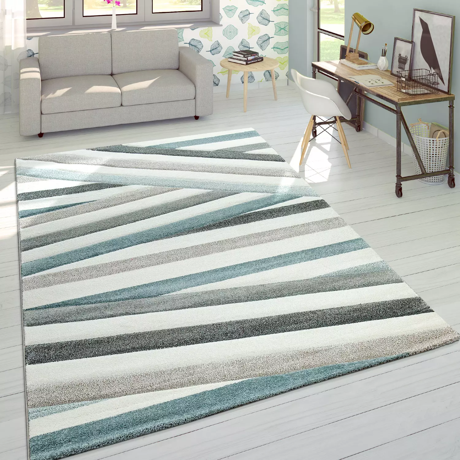 Ein nordisches Flair versprüht dieser Teppich im attraktiven Streifen-Look und sorgt in Ihrem Zuhause für eine herrliche Brise an Lebendigkeit. Die Streifen in den trendigen Pastellfarben Grau, Hellblau und Beige sind abstrakt platziert und erhalten durch den eingearbeiteten Konturenschnitt einen einzigartigen 3-D-Effekt. Kuscheln Sie sich auf diesen Teppich und träumen Sie sich behaglich in den nächsten Urlaub! Der Teppich in skandinavischem Flair hat nicht nur äußerlich seine Reize und überzeugt mit seinem frischen Look, sondern auch das verwendete Material kann sich in puncto Hochwertigkeit, Strapazierfähigkeit und Umweltfreundlichkeit absolut sehen lassen. Zudem ist er auf Fußbodenheizungen nutzbar – mehr Highlights kann ein Teppich nicht bieten. Einrichtungs-Idee: Klare Linien bei der Einrichtung geben diesem Teppich in zarten Pastelltönen die perfekte Ausstrahlung. Sie sind eher der nordische Typ rund um Ihre Wohnlandschaft? Dann passt dieser Teppich wunderbar zu Ihrem puristischen Stil.