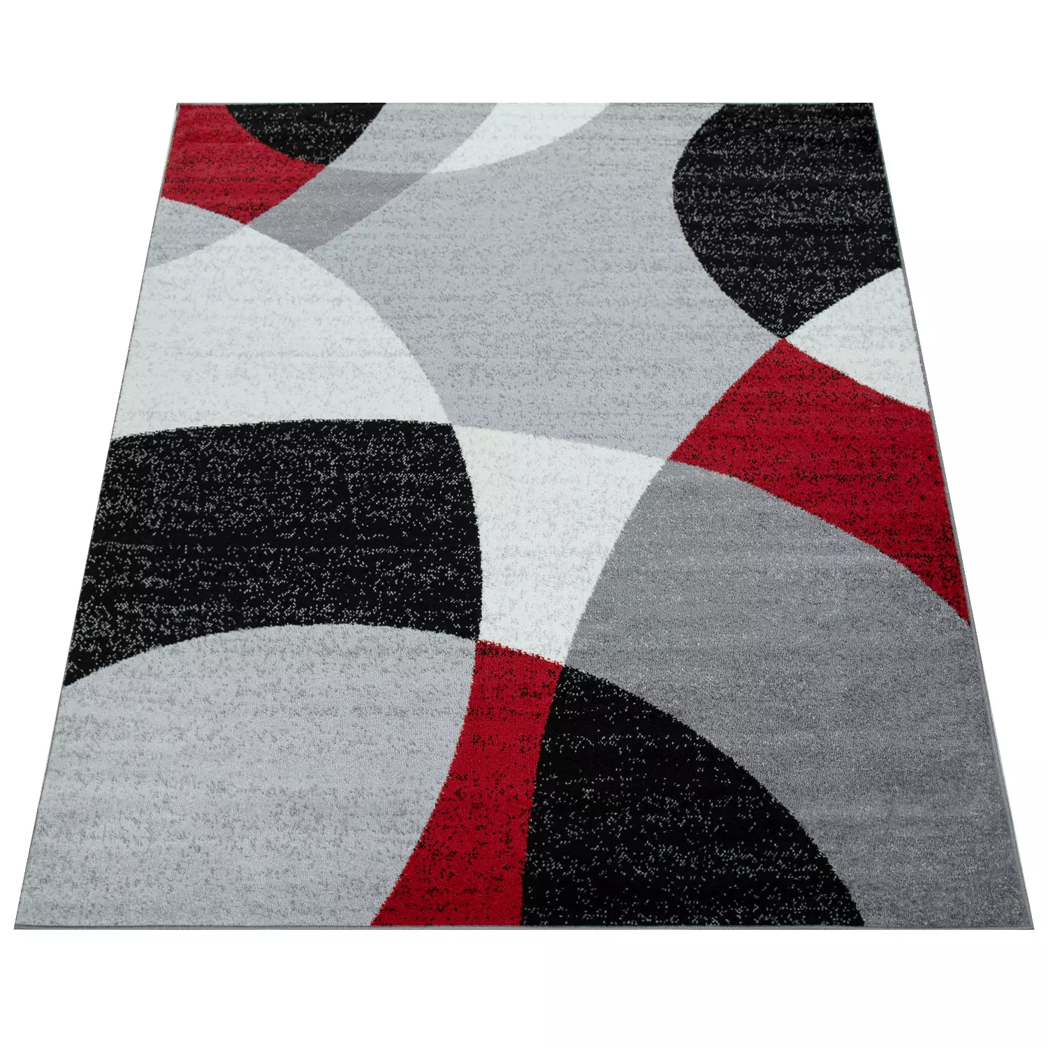 Einfach nur schön! Dieser Kurzflor-Teppich bietet mit seinem geometrischen Design genau das Flair, das Sie sich wünschen – originell und sehr behaglich. Die rund angelegten Formen wirken wie übereinander gelegt, sodass ein dreidimensionales, lebendiges Bild entsteht. Auch ist dieses Schmuckstück durch seine abwechselnden Farben Weiß, Schwarz, Grau und Rot kontrastreich im Ausdruck und zieht damit jeden Teppich-Liebhaber in seinen Bann. Eine dezent melierte Struktur bringt dabei je nach Lichteinfall wundervolle Effekte. Dank seines robusten Materials ist der Teppich bestens zu pflegen und bleibt durch seine Farbbrillanz und hohe Strapazierfähigkeit über lange Zeit ein wunderschönes Accessoire. Natürlich ist er dabei frei von Schadstoffen – belegt durch die Prüfung nach STANDARD 100 by OEKO-TEX® – und damit unbedenklich in jedem Raum auslegbar. Einrichtungs-Idee: Dieser Teppich ist mehr als ein praktischer Bodenbelag, denn durch sein Design kombiniert mit hellen Möbeln und geschickt platzierten Accessoires in Rot erhält Ihr Wohnraum ein einladendes, modernes Ambiente.