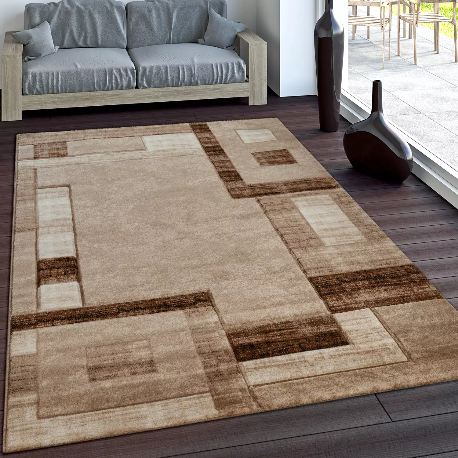 Ein echter Eyecatcher ist dieser Teppich, denn sein modernes Muster, die warme Farbgebung und der einzigartig hohe Kuschelfaktor machen ihn sofort zum Mittelpunkt eines jeden Wohnraums. Hier geben rechteckige Formen mit unterschiedlichen Farbflächen den Ton an, während der feine Handkonturenschnitt für einen dreidimensionalen Effekt sorgt. Perfekt für Fans von stilvollen Teppichen, die das gelungene Maß an Gemütlichkeit suchen! Ein Teppich, den Sie auch durch seine praktischen Merkmale zu schätzen lernen: Zu 100 % aus Polypropylen gefertigt, ist er ungewöhnlich robust und verfügt über optimale Pflege- und Reinigungseigenschaften. Seine Strapazierfähigkeit macht ihn zu einem vielseitig einsetzbaren Allrounder, dem auch hoch frequentierte Räume nichts anhaben können. Zudem bescheinigt das Zertifikat nach dem STANDARD 100 by OEKO-TEX® seine gesundheitliche Unbedenklichkeit. Einrichtungs-Idee: Ergänzen Sie den Auftritt dieses Teppichs mit modernen Accessoires wie zum Beispiel bauchige Vasen, großformatige Fotografien an den Wänden, einem Glastisch mit Edelstahlkorpus und vielem mehr.