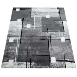 Ein Designer-Teppich, an dem Sie sich nicht satt sehen werden! In grau-schwarzer Farbgebung und wunderschöner Maserung bietet dieser Teppich einen höchst abstrakten Stil. Kunstvoll wurden hier sowohl Strichlinien in verschiedenen Farben als auch Quadrate platziert – das verleiht ihm einen besonders edlen Touch. Die Elemente erhalten durch den handgearbeiteten Konturenschnitt einen dreidimensionalen Effekt. Einfach ein perfekter Teppich, mit dem Sie sich wohlfühlen werden und der alle Gäste gut gelaunt willkommen heißt. Gefertigt ist der Teppich aus einem hochwertigen Material, dass nur Vorteile mit sich bringt: Durch den Einsatz der robusten Kunstfaser Polypropylen ist er sehr strapazierfähig und ausgesprochen pflegeleicht. Auch seine intensive Farbbrillanz bleibt auf lange Sicht erhalten – die Unbedenklichkeit rund um Schadstoffe ist zudem per STANDARD 100 by OEKO-TEX® geboten. Perfekt geeignet für Fußbodenheizungen! Einrichtungs-Tipp: Gemütliche Holzmöbel oder eine weiße, elegante Einrichtung: Dieser Teppich verträgt einfach alles. Aufgrund seines dunkelfarbigen Charakters bringen helle Accessoires den gewünschten Kontrast und damit die Komposition Ihrer Wohnlandschaft besonders schön zur Geltung.