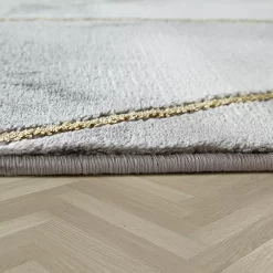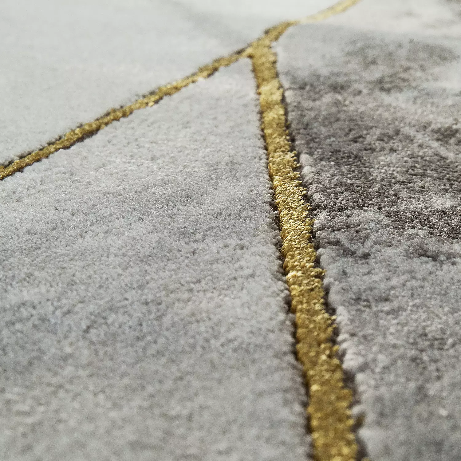 Diese Teppiche vereinen kunstvoll das eigentlich Unvereinbare und bringen zauberhaft weichen Steinboden in Ihr Zuhause! Goldene oder silberne Linien und Muster durchbrechen die außergewöhnliche Marmor-Optik und schaffen so eine harmonische Kombination von modernen und klassischen Elementen. Egal, ob geradliniges Rauten-Muster, teils mäandernde Bordüren oder unregelmäßige geometrische Linien – diese luxuriösen Kunstwerke versprühen einen erhabenen, antiken Charme und werden durch die trendigen Akzente zu zeitlosen Highlights! Einen enormen Vorteil gegenüber ihren steinernen Vorbildern haben die hochwertigen Kurzflor-Teppiche in Form ihres kuscheligen, 12 Millimeter hohen Flors, mit dem sie neben des tollen Looks auch ein komfortables Laufgefühl schaffen. Trotz der weichen Geschmeidigkeit ist diese Kollektion unerwartet robust und pflegeleicht und glänzt mit Widerstandsfähigkeit. Aus einem nach STANDARD 100 by OEKO-TEX® geprüften Polypropylen-Polyester-Gemisch hergestellt, sind die Vorleger natürlich frei von Schadstoffen.