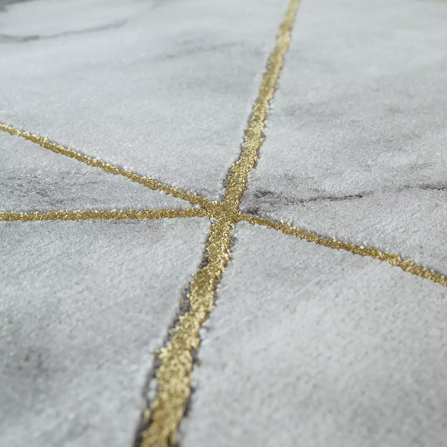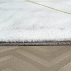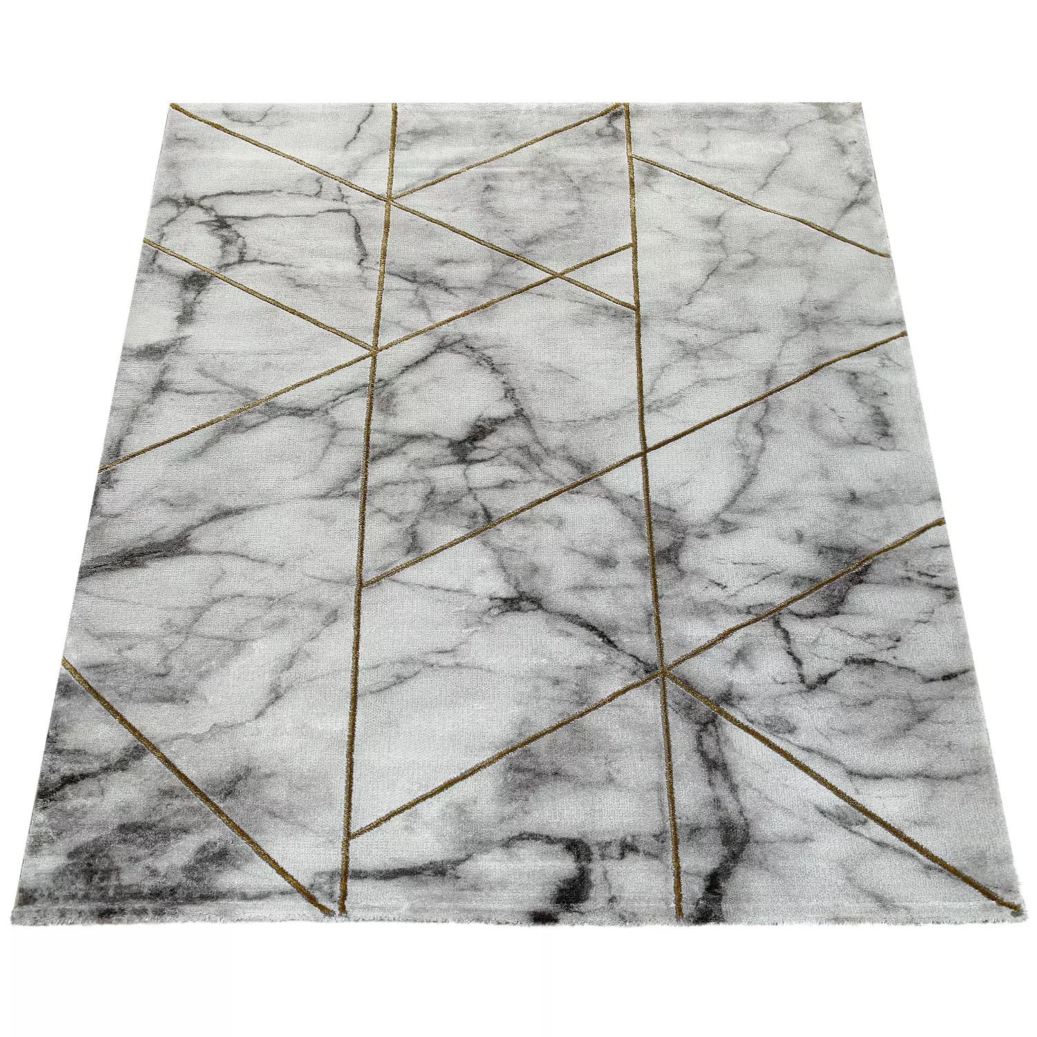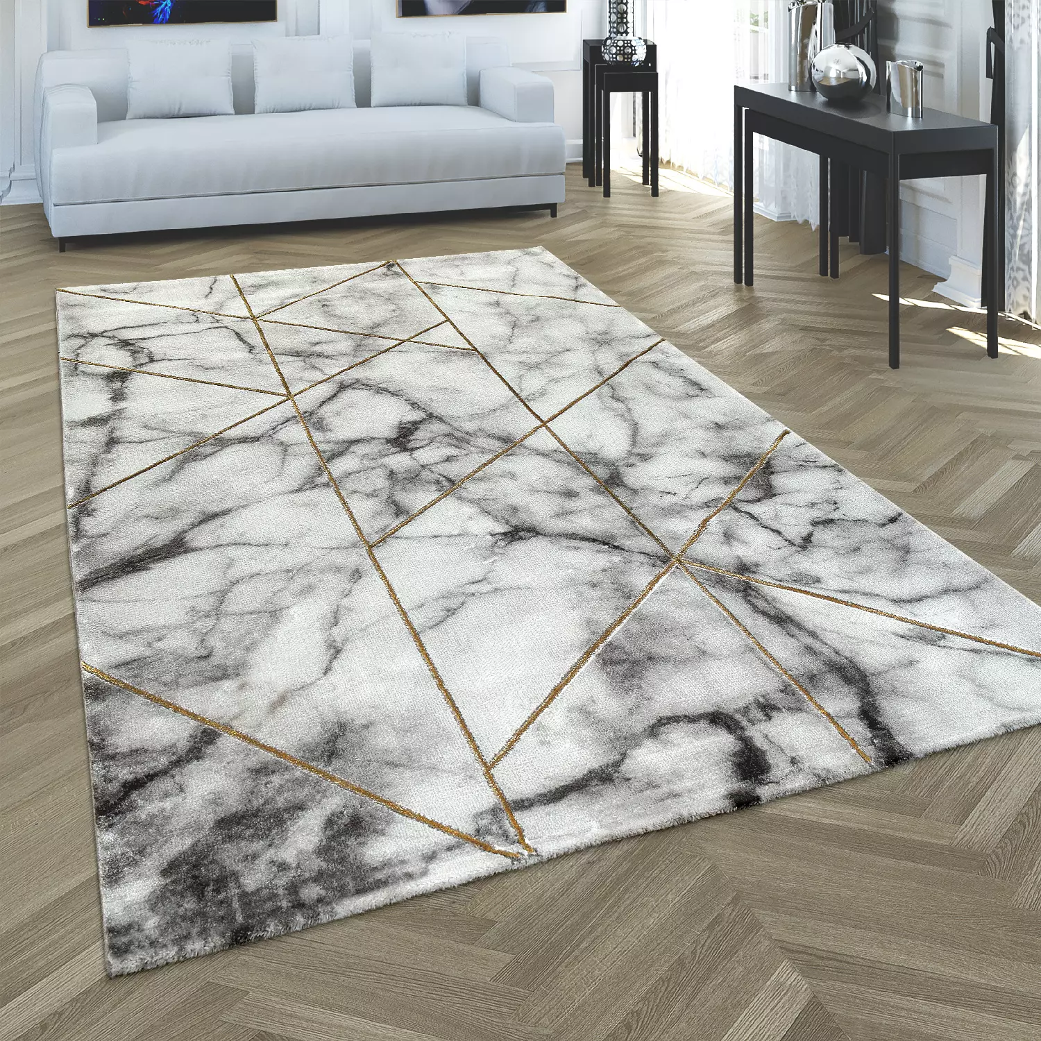 Diese Teppiche vereinen kunstvoll das eigentlich Unvereinbare und bringen zauberhaft weichen Steinboden in Ihr Zuhause! Goldene oder silberne Linien und Muster durchbrechen die außergewöhnliche Marmor-Optik und schaffen so eine harmonische Kombination von modernen und klassischen Elementen. Egal, ob geradliniges Rauten-Muster, teils mäandernde Bordüren oder unregelmäßige geometrische Linien – diese luxuriösen Kunstwerke versprühen einen erhabenen, antiken Charme und werden durch die trendigen Akzente zu zeitlosen Highlights! Einen enormen Vorteil gegenüber ihren steinernen Vorbildern haben die hochwertigen Kurzflor-Teppiche in Form ihres kuscheligen, 12 Millimeter hohen Flors, mit dem sie neben des tollen Looks auch ein komfortables Laufgefühl schaffen. Trotz der weichen Geschmeidigkeit ist diese Kollektion unerwartet robust und pflegeleicht und glänzt mit Widerstandsfähigkeit. Aus einem nach STANDARD 100 by OEKO-TEX® geprüften Polypropylen-Polyester-Gemisch hergestellt, sind die Vorleger natürlich frei von Schadstoffen.