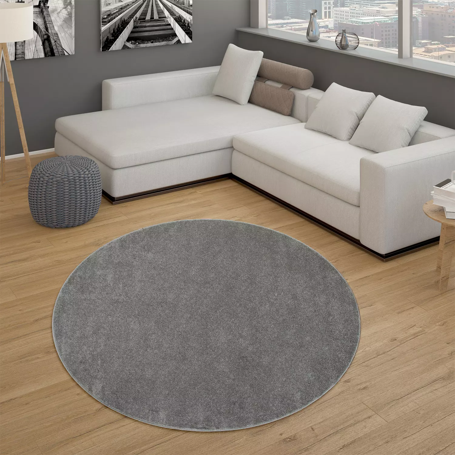 Teppich Portivo Anthrazit 160 Cm Rund