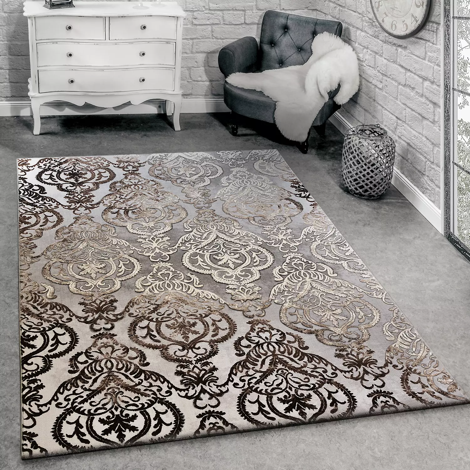 Sie lieben Barock und suchen einen Blickfang, der diesen Stil mit modernen Elementen kombiniert? Dann werden Sie diesen Teppich sofort in Ihr Herz schließen. Seine facettenreiche Ornamentik steht im wunderbaren Kontrast zum grau-blauen Farbenspiel von Muster und Hintergrund. Durch den Hoch-Tief-Effekt werden die orientalischen Details besonders hervorgehoben und fühlen sich unter den Füßen wie erhaben an. Vor allem in Kombination mit dem weichen Flor ein wunderbares Gefühl! Die optischen Highlights werden bei diesem Schmuckstück durch Allrounder-Qualitäten ergänzt. So wird Sie die Strapazierfähigkeit ebenso begeistern wie seine optimalen Pflegeeigenschaften. Zudem ist er wie geschaffen für die Fußbodenheizung und damit in beliebigen Räumlichkeiten auslegbar. Einrichtungs-Idee: Im rauen Vintage-Look des Industrie-Style ist dieser Teppich bestens aufgehoben. Unbearbeitetes Holz, unverputzte Wände, Industrielampen und die Nutzung von Stahl und anderen Metallen bei den Accessoires geben bei diesem Stil den Ton an.