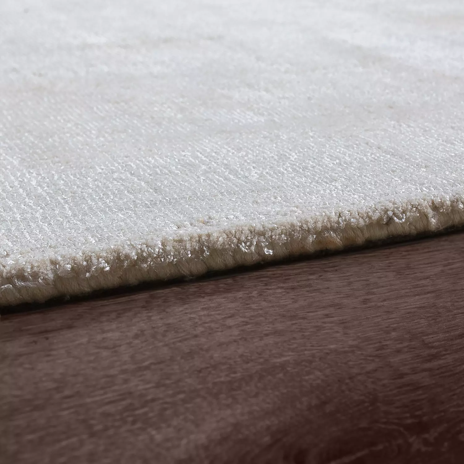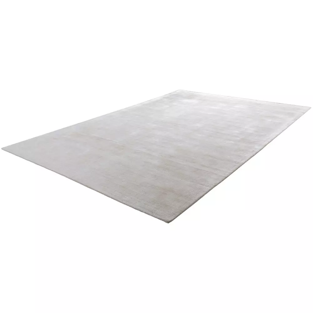 Pure Extravaganz auf den Punkt gebracht! Dieser Teppich ist in seiner schlichten Art ein echter Traum, denn seine Farbnuancen zwischen Silber und Beige verleihen ihm ein einzigartiges Flair. Das verwendete Material Viskose erzeugt darüber hinaus einen seidigen Schimmer. Übrigens: Viskose ist hautfreundlich, wird nach dem Herstellungsverfahren naturgetrocknet und ist damit ein Garant für höchste Verträglichkeit. Für das Plus an Formstabilität sind zudem die Ränder gekettelt – die sauber eingefasste Stoffkante ergänzt die edel anmutende Optik. Die Herstellung per Hand mit exklusiver Kunstfaser gestaltet diesen Teppich pflegeleicht und robust, aber vor allem wunderbar weich. Durch seine dezente Farbgebung lässt er sich vielseitig kombinieren und wird damit zum Allrounder in Ihren Räumen – ob im Wohn- und Essbereich, im Schlafzimmer oder im Büro. Einrichtungs-Idee: Creme ist Trend, und das zu Recht, denn die Farbe wirkt harmonisch und einladend. Ob Sie eher ein modernes Design mit klaren Linien bevorzugen oder sich in verspielte Holzmöbel verliebt haben – mit diesem Teppich und farbenfrohen Accessoires bringen Sie Ihren individuellen Geschmack perfekt zum Ausdruck.