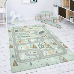 Nicht nur im Winter der absolute Hit: Verspielt und mit einer traumhaften Ruhe bringen diese friedlich niedlichen Kinderteppiche die Harmonie einer schneebedeckten Winterlandschaft in das Kinderzimmer – und sind dabei trotzdem wunderbar gemütlich! Auf den altbewährten Spielstraßen können Ihre Kleinen das verschneite Dörfchen spielerisch erkunden und die fantasievollen Nadelwälder nach spannenden Bären oder scheuen Rentieren durchforsten. In zartem, fast gräulichem Türkis gehalten, lassen die Teppiche Mädchen- und Jungenherzen gleichermaßen höherschlagen und finden wirklich in jeder Einrichtung einen schönen Platz.