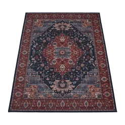Wenn Sie ein wenig königliche Anmut in Ihr Ess-, Schlaf- oder Wohnzimmer bringen wollen, sollten Sie sich diese edlen Teppiche noch einmal genauer anschauen. Sie haben alles, was sich wirkliche Einrichtungs-Liebhaber wünschen und überzeugen mit ihrer royalen Noblesse. Die Muster, die man bereits viele Male in der Epoche des Barocks gesehen hat, zieren die gesamte Oberfläche der schicken Vorleger und werden stilvoll eingerahmt von einer passenden Bordüre. Dabei rundet die geschmackvolle Farbgestaltung in Rotund Blau den anmutigen Gesamteindruck gekonnt ab und sorgen für einen echten Blickfang.