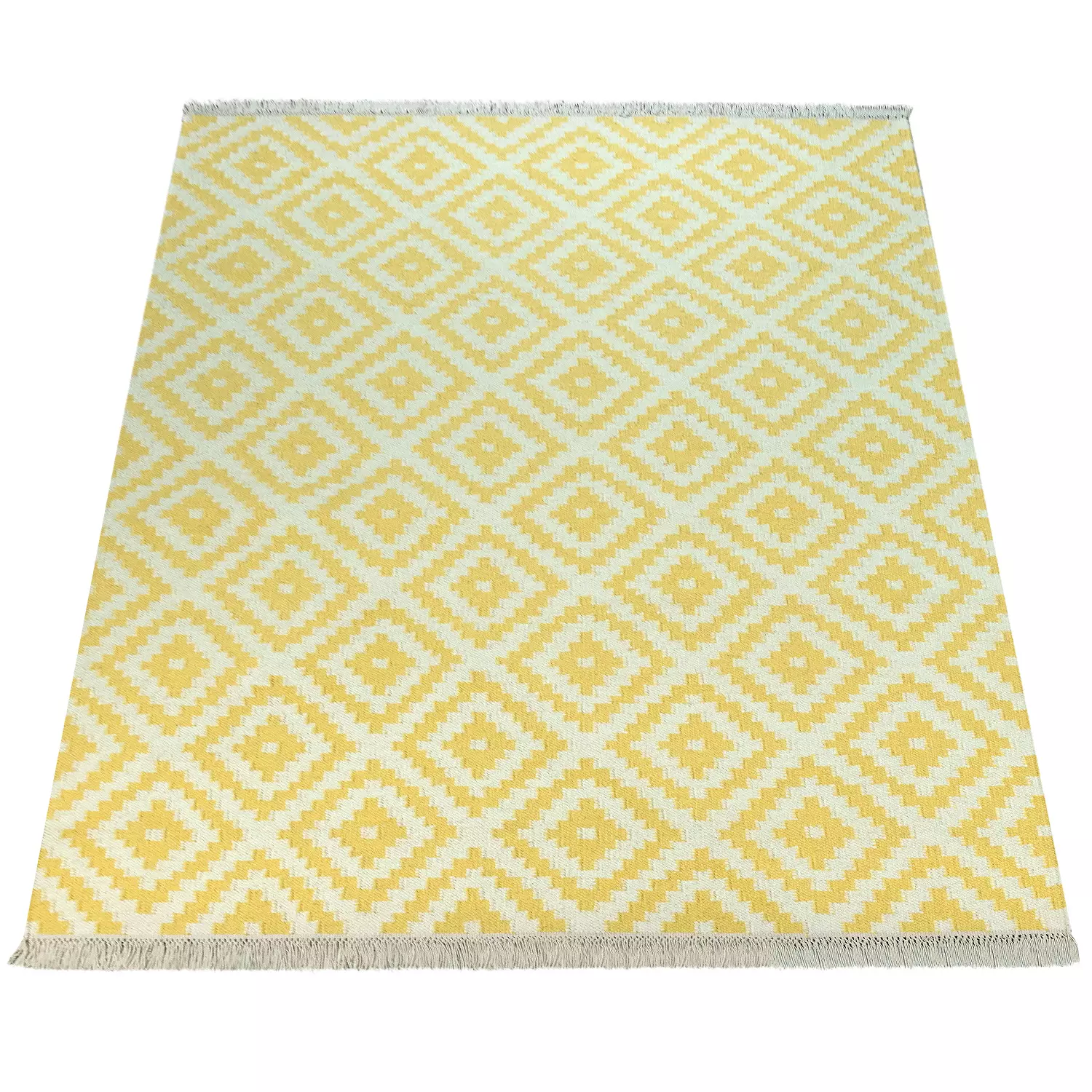Wenn Sie nach einem Teppich suchen, der exotisches Flair und moderne Leichtigkeit miteinander verbindet, dann sind die Modelle aus dieser Kollektion die richtige Wahl für Sie. Die Flachgewebe-Teppiche werden von einem typisch marokkanischen Muster geziert, das sich in verschiedenen, trendigen Farbkombinationen wie Gelb-Weiß, Schwarz-Weiß und Grau-Weiß im skandinavischen Stil präsentiert. Die kontrastierenden Fransen runden das Design gekonnt ab. Ob im Wohnzimmer oder im Schlafzimmer, diese Teppiche sind wundervolle farbenfrohe Hingucker, die für gute Laune sorgen und Ihre Einrichtung stilsicher abrunden. Jeder Teppich aus dieser Kollektion ist ein echtes Naturprodukt und besteht zu 80 % aus Wolle und zu 20 % aus Baumwolle. Darüber hinaus dürfen Sie sich auf eine hochwertige Verarbeitung freuen, da die Teppiche handgewebt und aufgrund ihrer erstklassigen Qualität sehr robust und pflegeleicht sind.